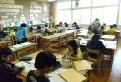 夏休み期間中の7月26日(木)、27日(金)の2日間、3、4、5、6年生を対象にステップアップタイムが行われました。主に国語と算数のこれまで学習してきた基礎的基本的な学習内容の定着をねらいとして実施しています。1日目が60名、2日目が60名の参加があり、講師の退職された先生方や地域のボランティア、教職員の助言のもと、熱心に問題に取り組んでいました。